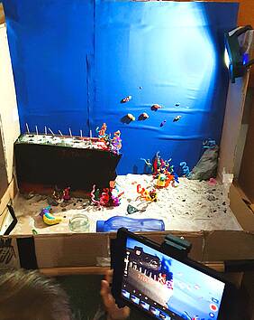 Jedes Kind brachte sein Talent und seine Interessen in die Produktionen ein: Mit iPads drehten und schnitten sie die Filme, sie schrieben Drehbücher, führten Regie, stellten Knetfiguren her und waren für die Beleuchtung, die Kulissen, oder die Geräusche zuständig. Zum Abschluss präsentierten die Kinder die fertigen Trickfilme ihren Familien.